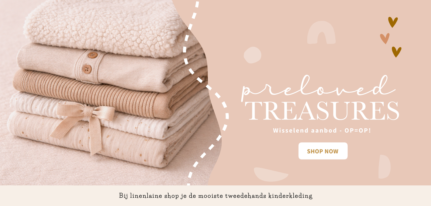 Bij Linenlaine vind je een mooie mix van nieuwe én tweedehands kinderkleding voor jongens en meisjes van maat 44 t/m maat 140. Wij geloven dat kinderkleding niet alleen mooi en comfortabel moet zijn, maar ook duurzaam. Daarom combineren we nieuwe items met zorgvuldig geselecteerde tweedehands kleding die nog een tweede ronde verdient.