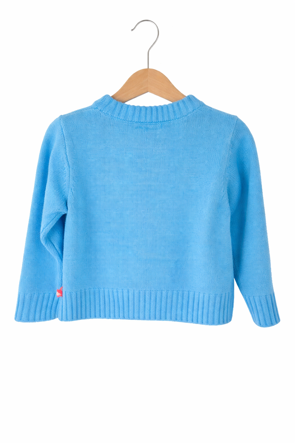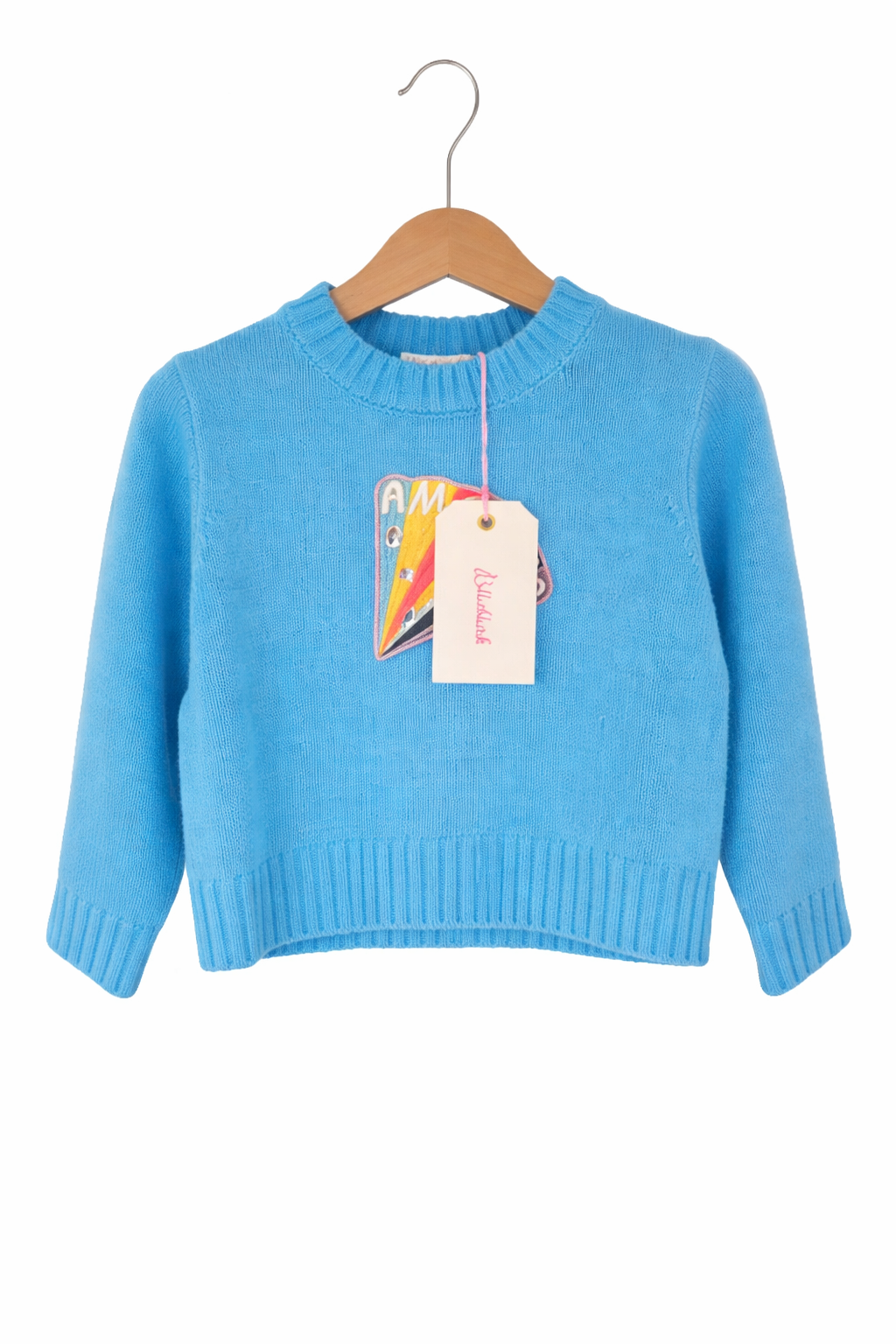 Prachtige Billieblush meisjes trui in een frisse lichtblauwe kleur Met opvallende “AMAZING” applicatie op de borst in regenboogkleuren en glitterdetails. De trui heeft een comfortabele ronde hals, lange mouwen en een zachte knit – perfect voor school, een feestje of een casual outfit.